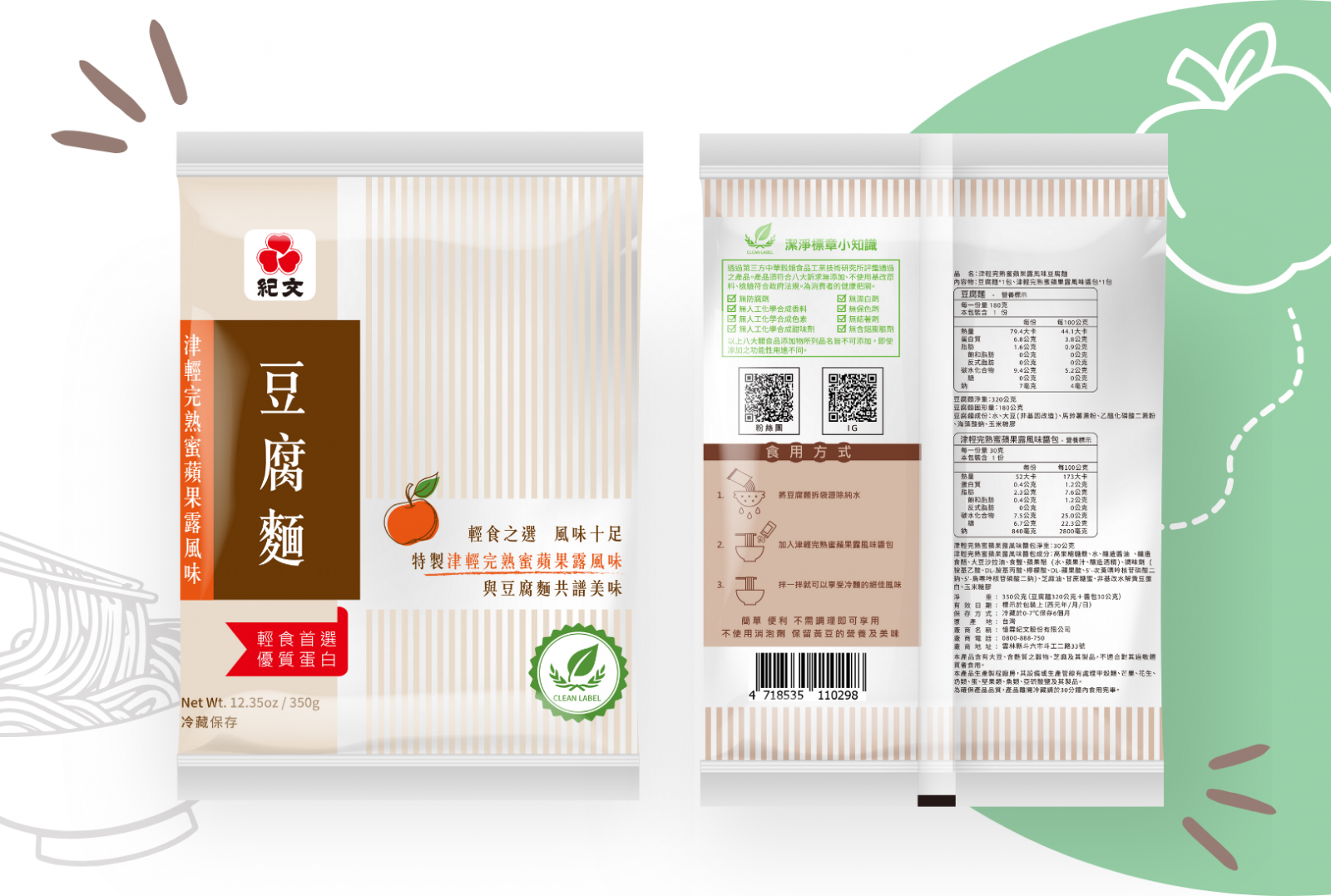 (冷藏)紀文豆腐麵 津輕完熟蜜蘋果露風味豆腐麵350克